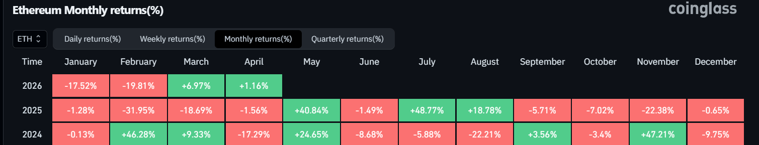 ETH Monthly Returns. Source: Coinglass