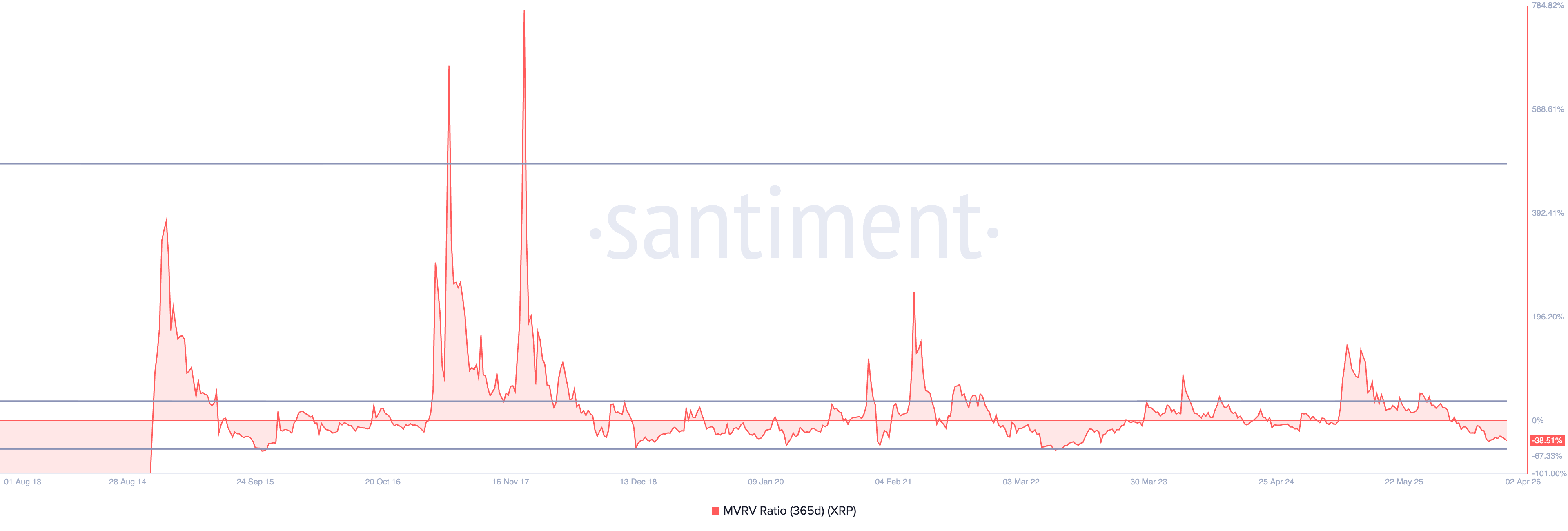 Ripple (XRP) hovers above $1.35 at press time on Monday, with 2% intraday gains, ahead of a volatile week as markets remain on edge amid the US attempts to force Iran into accepting a ceasefire deal. On-chain data shows XRP as oversold over the last year, while derivatives data shows the market anticipating a near-term recovery.