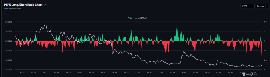 However, in the short term, the market failed to respond positively to this news, with Pepe’s price declining 4.58% on Wednesday and continuing its pullback as of writing on Thursday, as geopolitical uncertainty continues to drive broader market direction.