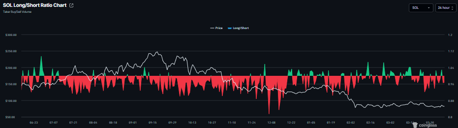 Solana long-to-short ratio chart. Source: Coinglass