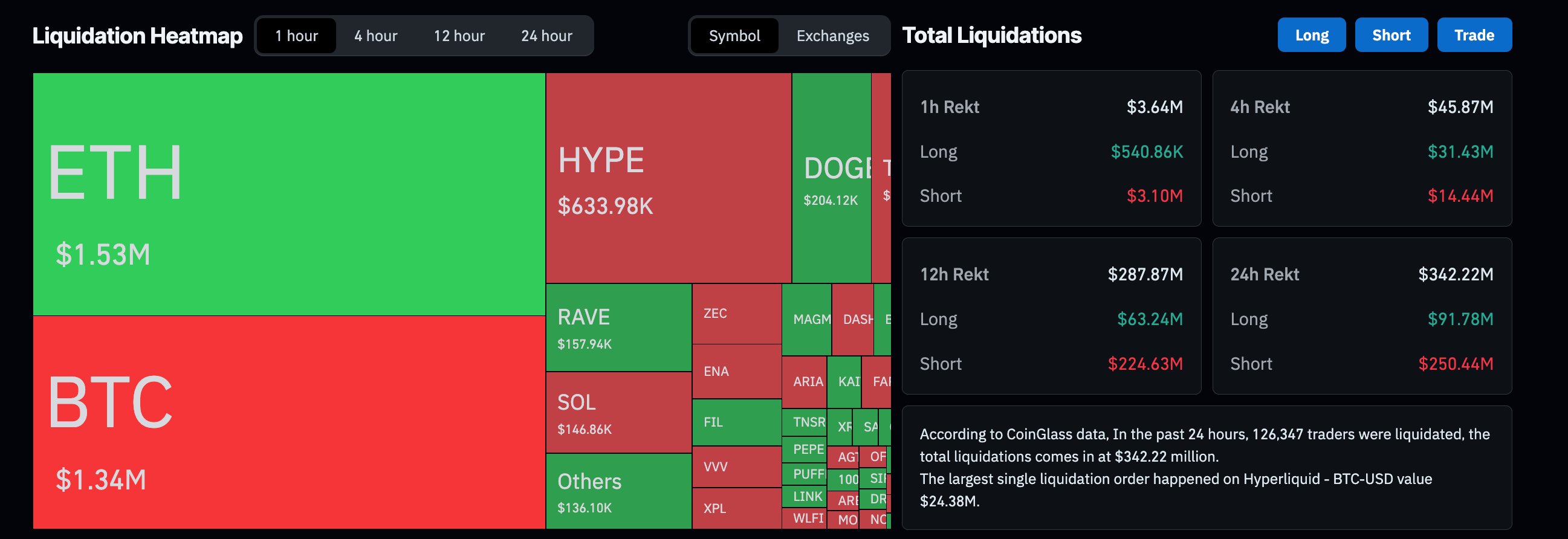 Meanwhile, CoinGlass data shows liquidations over the past 24 hours reached $342.22 million, led by $250.44 million in short liquidations, reflecting a bearish wipeout in the market.