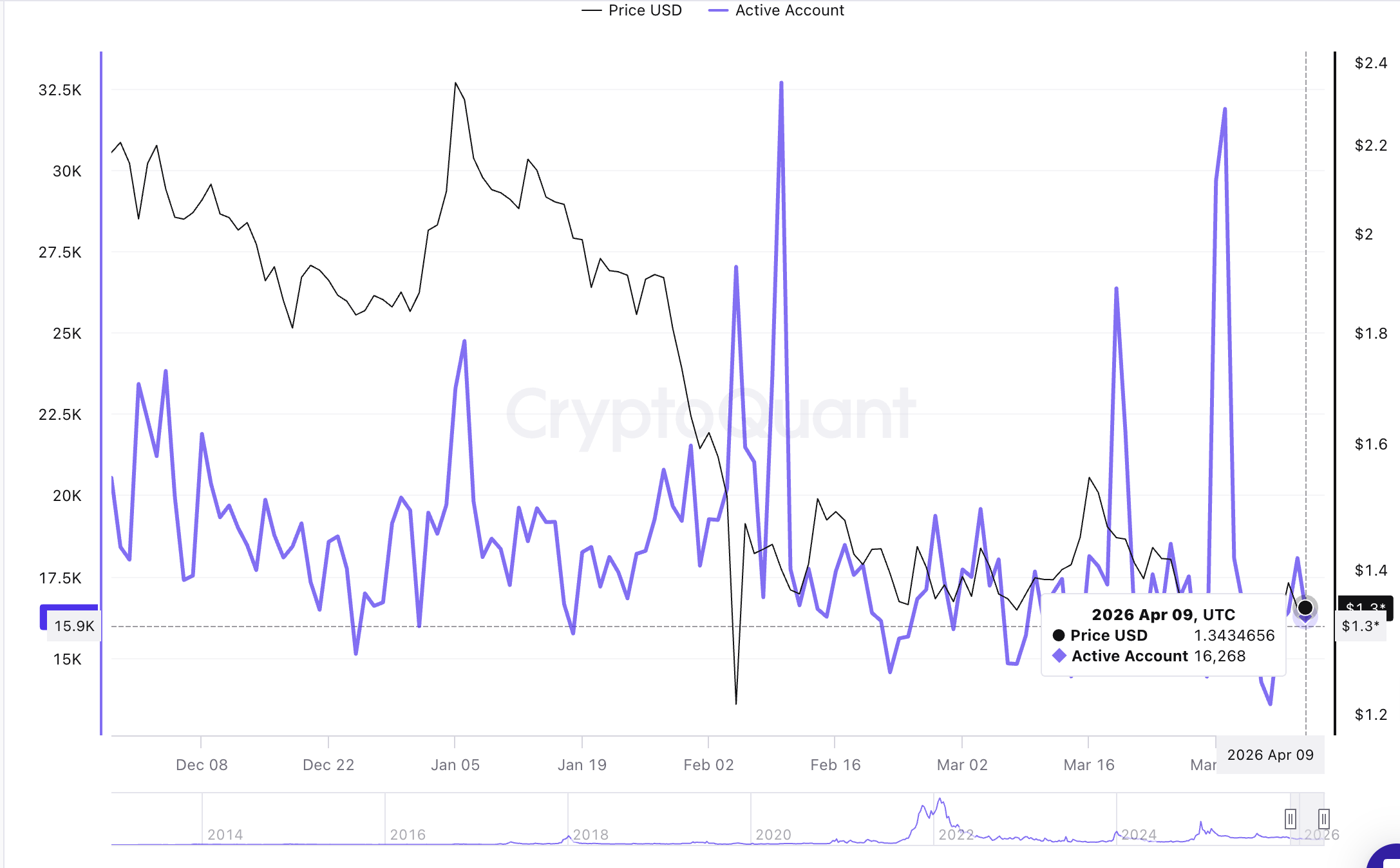 The number of addresses actively transacting on the XRP Ledger (XRPL) by sending or receiving assets has declined to near 16,000 as of Thursday, from roughly 18,000 the previous day.