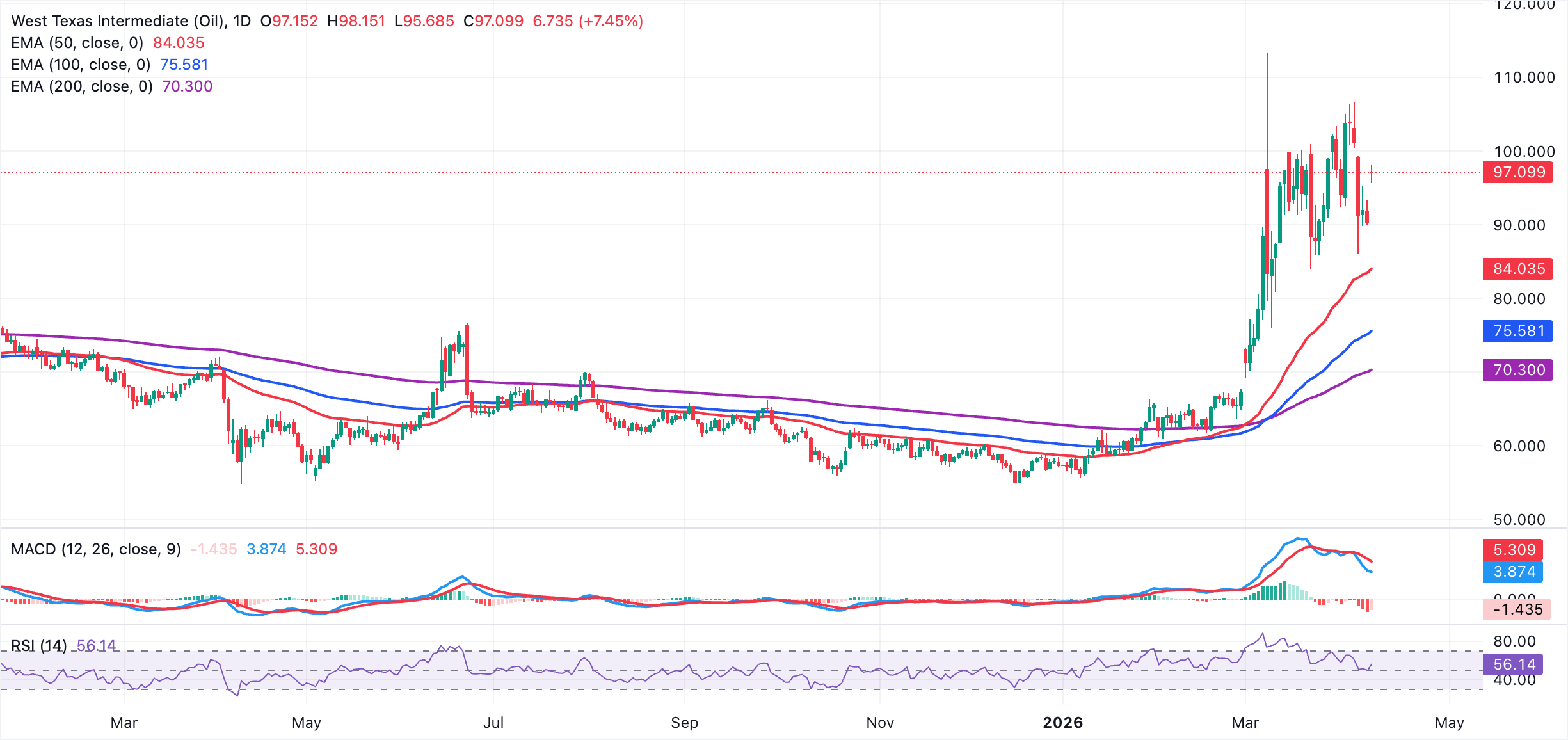West Texas Intermediate (WTI) Oil prices surged, trading around $97.00 at the time of writing, up from roughly $86.00 on Wednesday. At least 20% of the world’s Oil and Gas supplies pass through the Strait of Hormuz, and its reopening could ease pressure on the global economy.