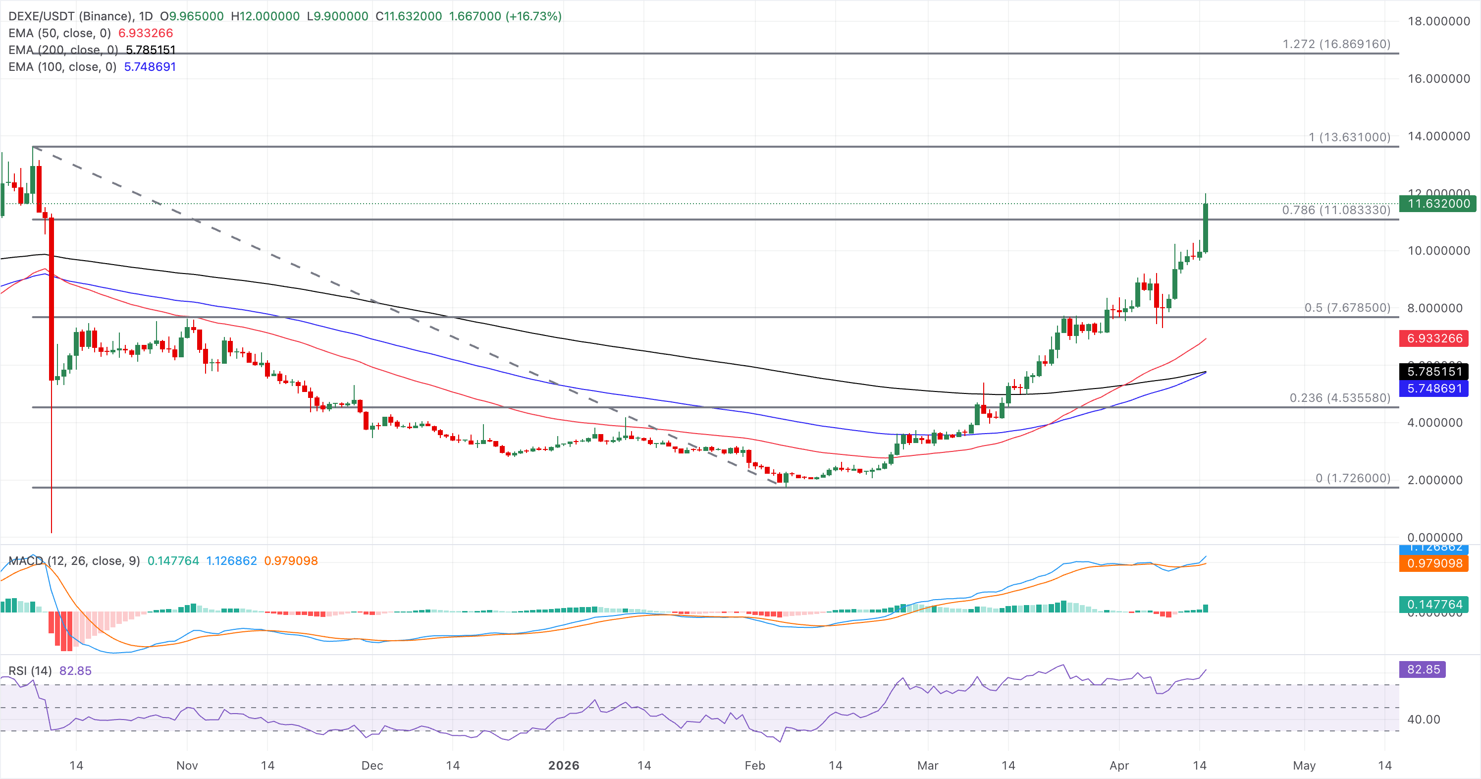 On the other hand, DeXe trades above $10 at press time on Wednesday, with intraday gains of over 16%. The recovery crosses above the 78.6% Fibonacci retracement level of the slip from $13.63 to $1.72 at $11.08.