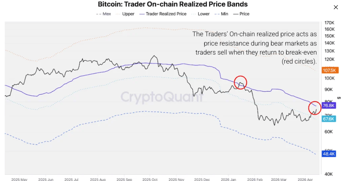 The analyst concludes that “This relatively subdued reading suggests that profit-taking is still in its early stages. Bitcoin holders who accumulated between $65,000 and $76,000 are now in profit, creating a growing pool of unrealized gains. In bear market rallies, realized profit spikes above $1 billion have historically coincided with, or slightly preceded, local price tops. If Bitcoin sustains above $76,000 or pushes higher toward the $76,800 Traders’ Realized Price, daily realized profits could accelerate meaningfully toward and above the $1 billion mark, adding further selling pressure and increasing the probability of a rally stall or reversal.”