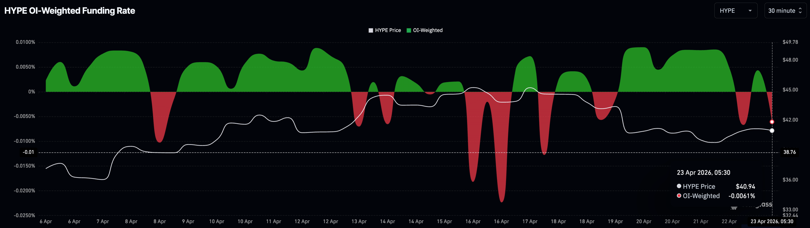 HYPE OI-weighted funding rate. Source: CoinGlass