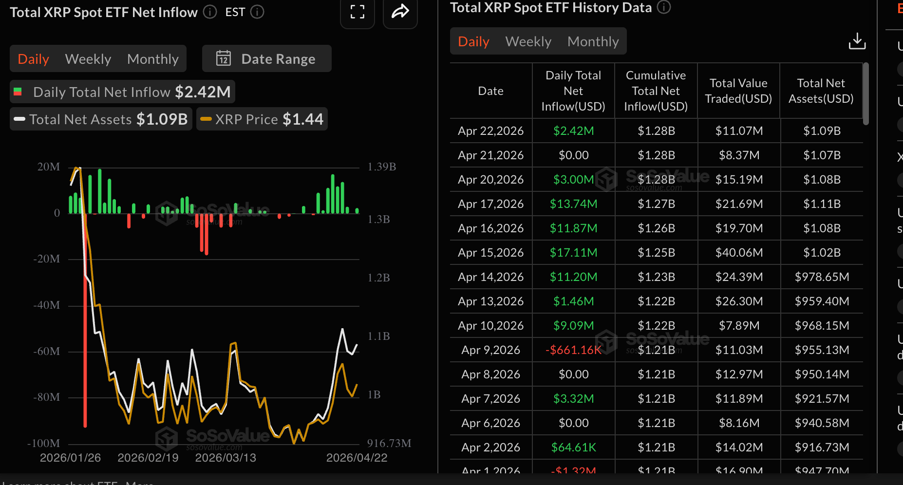 XRP ETF flows | Source: SoSoValue