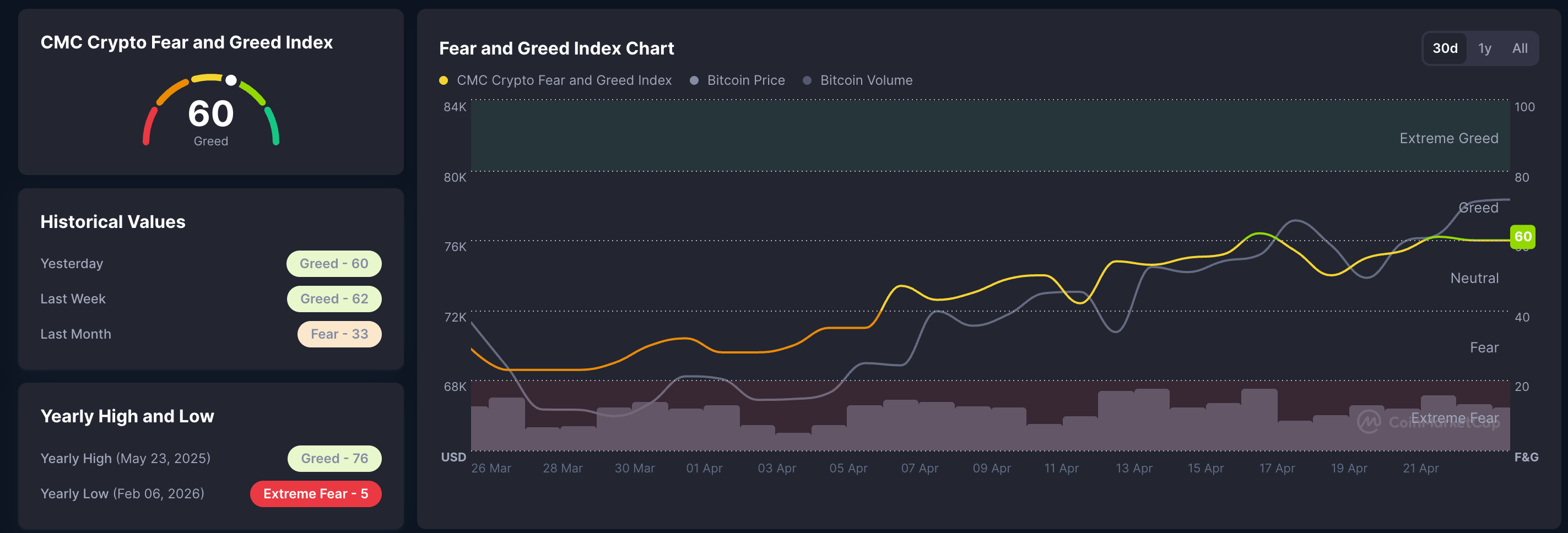 Crypto Fear and Greed Index. Source: CoinMarketCap