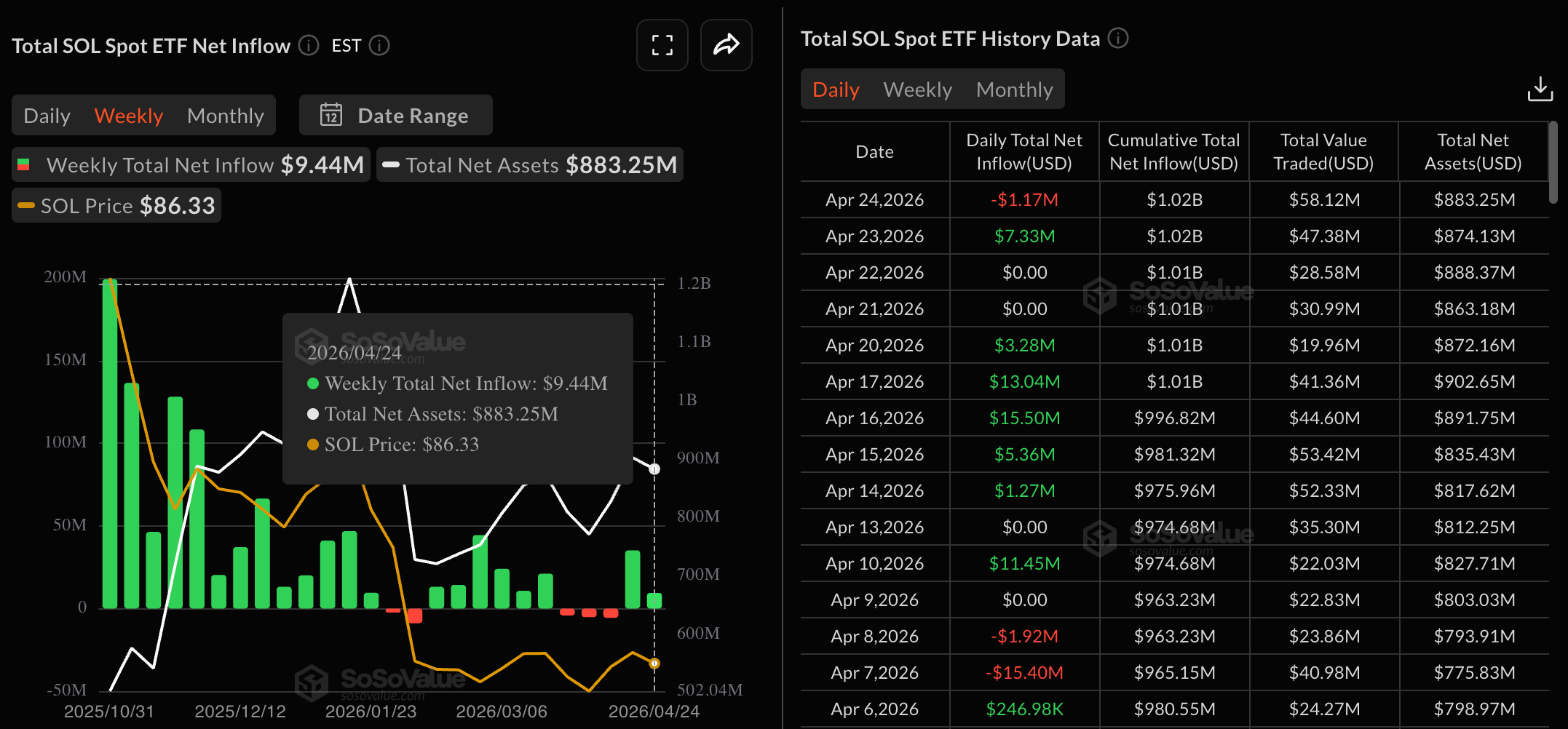 SOL ETFs data. Source: Sosovalue