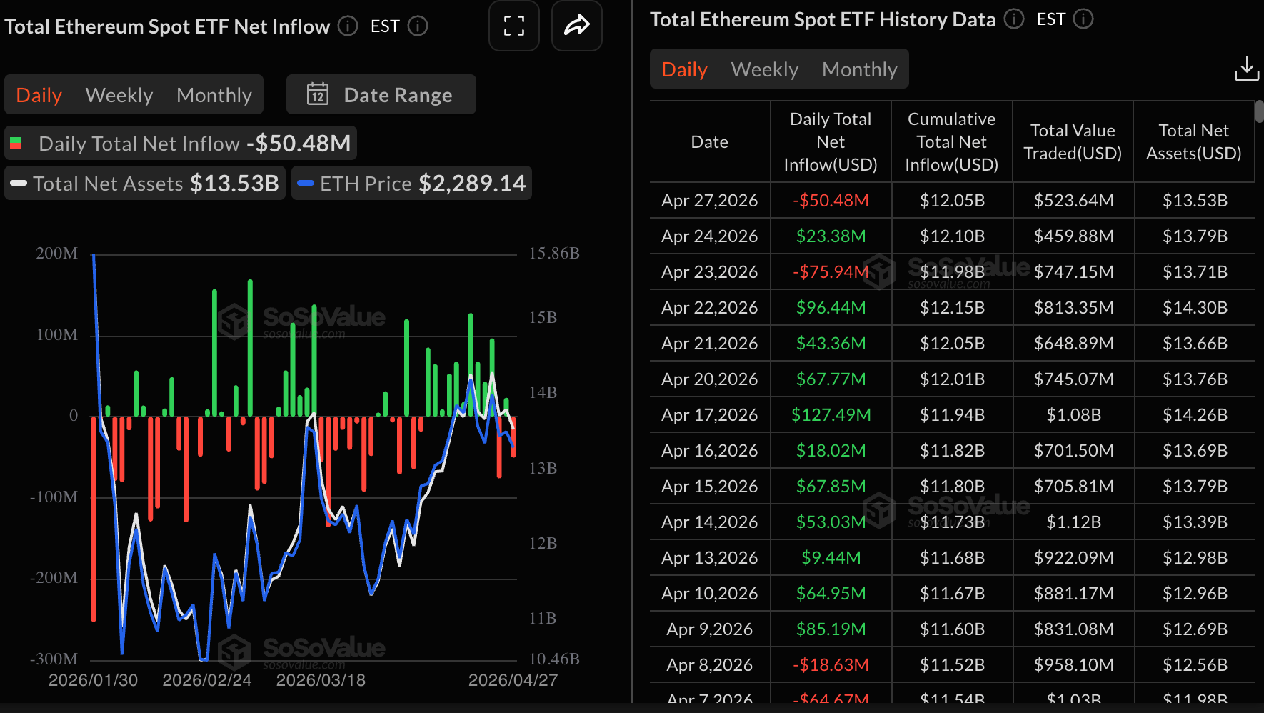 Ethereum ETF flows | Source: SoSoValue