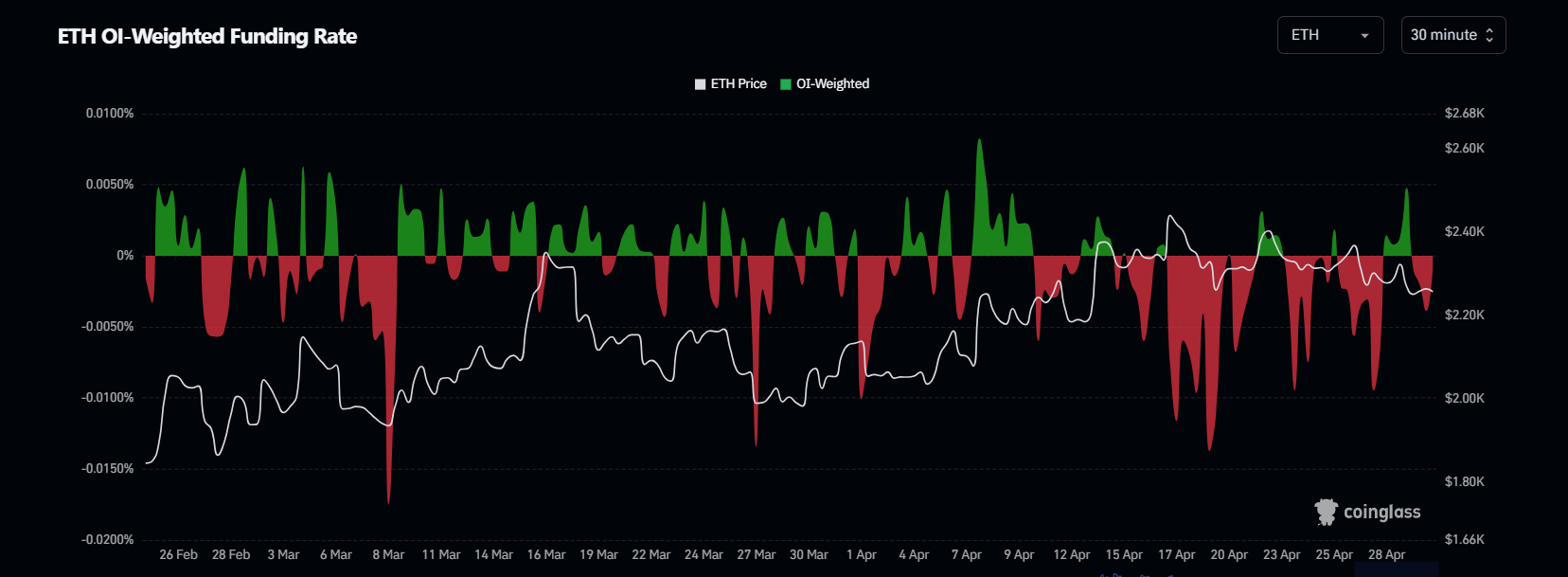Open interest has also hovered around 13.5 million ETH after declining from 14.4 million ETH on April 18, signaling lingering cautiousness among traders.