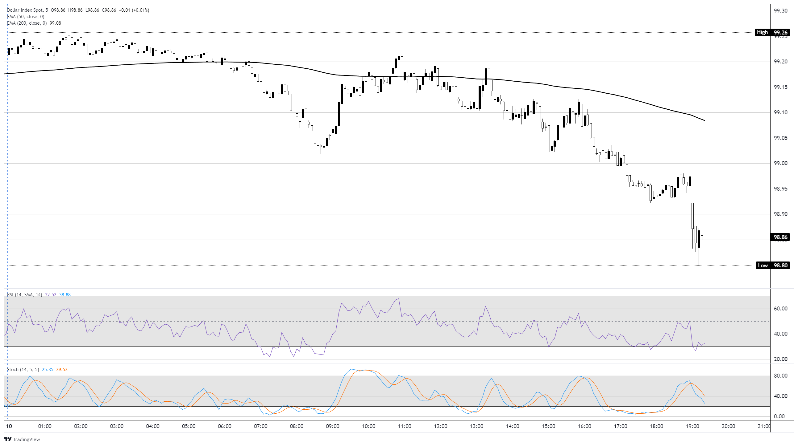 Chỉ số đô la Mỹ (DXY) đã giảm xuống mức thấp trong ngày mới vào thứ Tư sau khi Cục Dự trữ Liên bang (Fed) công bố lần cắt giảm lãi suất thứ ba liên tiếp mà thị trường đã dự đoán, hạ lãi suất chính sách xuống mức thấp nhất trong ba năm.