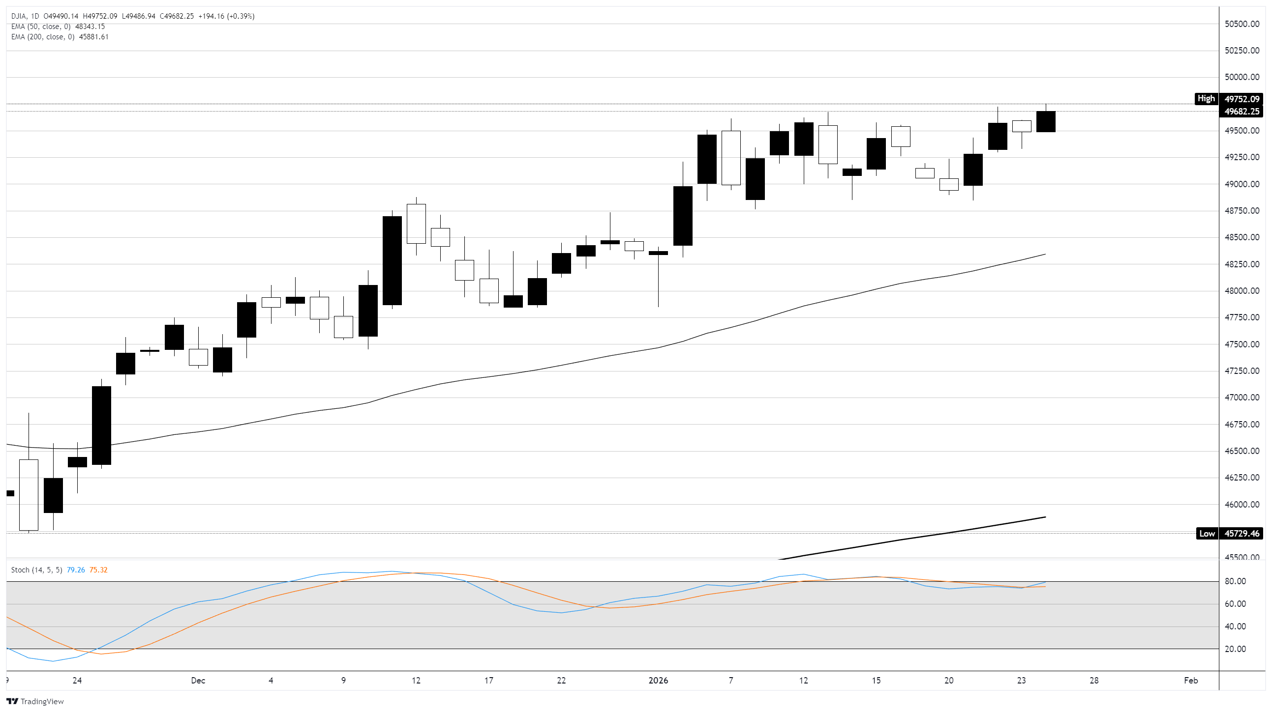 Về mặt chính sách, Fed sắp công bố quyết định lãi suất đầu tiên của năm, với không có thay đổi nào được mong đợi. Sự chú ý của các nhà đầu tư sẽ tập trung vào hướng dẫn trong tương lai, đặc biệt là các tín hiệu xung quanh thời điểm cắt giảm lãi suất tiềm năng. Các thị trường hợp đồng tương lai hiện đang định giá hai lần cắt giảm 0,25% vào cuối năm 2026.