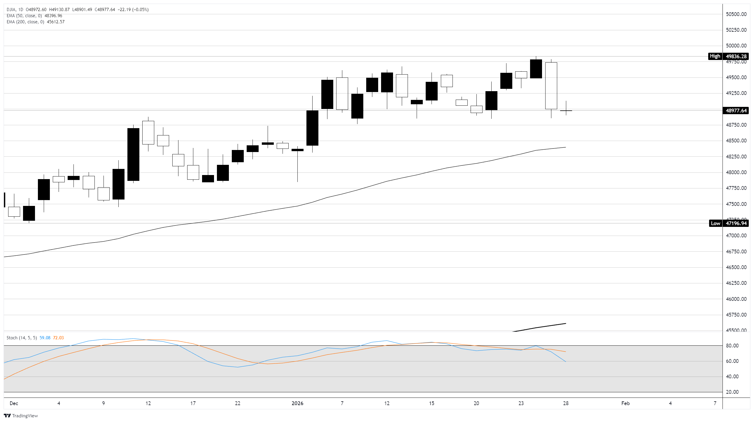 Chỉ số công nghiệp trung bình Dow Jones (DJIA) đã dao động trong khoảng giữa khi các nhà đầu tư chờ đợi quyết định lãi suất mới nhất từ Cục Dự trữ Liên bang (Fed). Một số khu vực của động lực thị trường đã xuất hiện trong lĩnh vực chip, đẩy chỉ số Standard & Poor’s 500 lên mức cao kỷ lục mới, trước khi giảm trở lại trước cuộc gọi lãi suất đầu tiên của Fed vào năm 2026.
