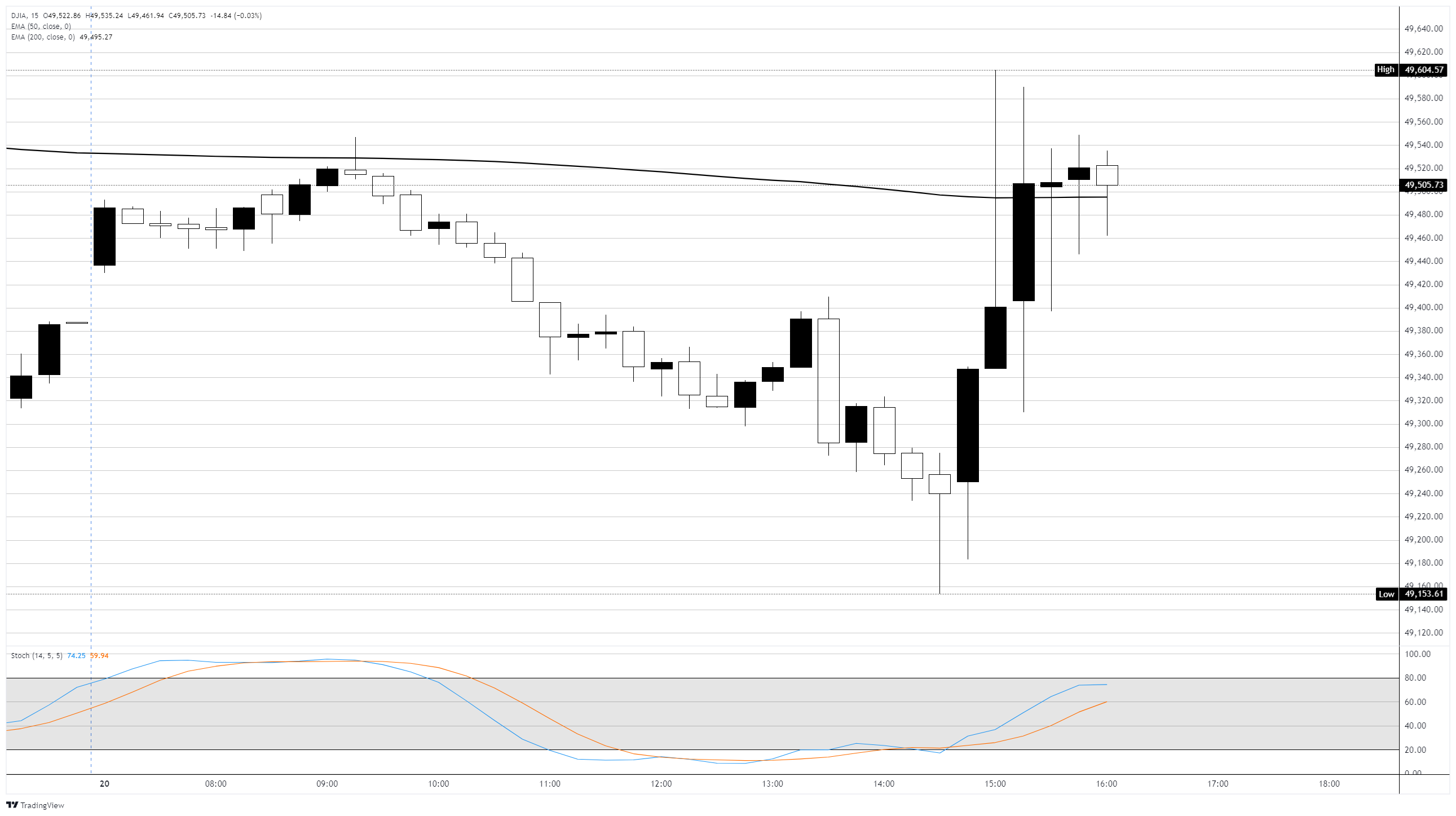 Chỉ số công nghiệp trung bình Dow Jones (DJIA) đã đảo ngược mức giảm đầu phiên vào thứ Sáu sau khi Tòa án Tối cao Mỹ bác bỏ các thuế quan rộng rãi của Tổng thống Trump trong một quyết định quan trọng 6-3. Chỉ số Dow tăng 207 điểm, tương đương 0,42%, giao dịch gần mức 49.600 sau khi giảm hơn 200 điểm trong phiên giao dịch đầu tiên do dữ liệu kinh tế không khả quan. Chỉ số S&P 500 tăng 0,52% lên 6.895 và Nasdaq Composite tăng 0,68% lên 22.837. Các quỹ ETF nặng về bán lẻ như SPDR S&P Retail ETF (XRT) đã tăng vọt 1,8% ngay sau phán quyết, với các công ty bị ảnh hưởng nhiều nhất bởi thuế nhập khẩu dẫn đầu.