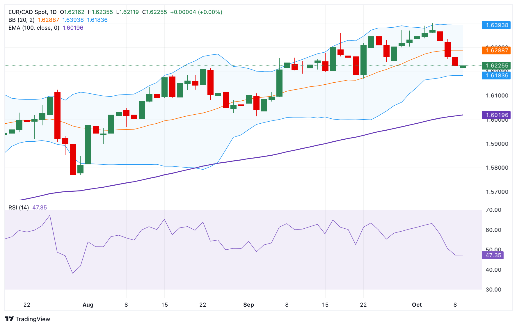 Về mặt kỹ thuật, EUR/CAD giữ xu hướng tăng giá trên biểu đồ hàng ngày, với giá giữ trên đường trung bình động hàm mũ 100 ngày quan trọng (EMA). Tuy nhiên, không thể loại trừ khả năng củng cố thêm khi chỉ báo sức mạnh tương đối (RSI) 14 ngày dao động quanh đường giữa. Điều này cho thấy đà tăng trung lập trong ngắn hạn.
