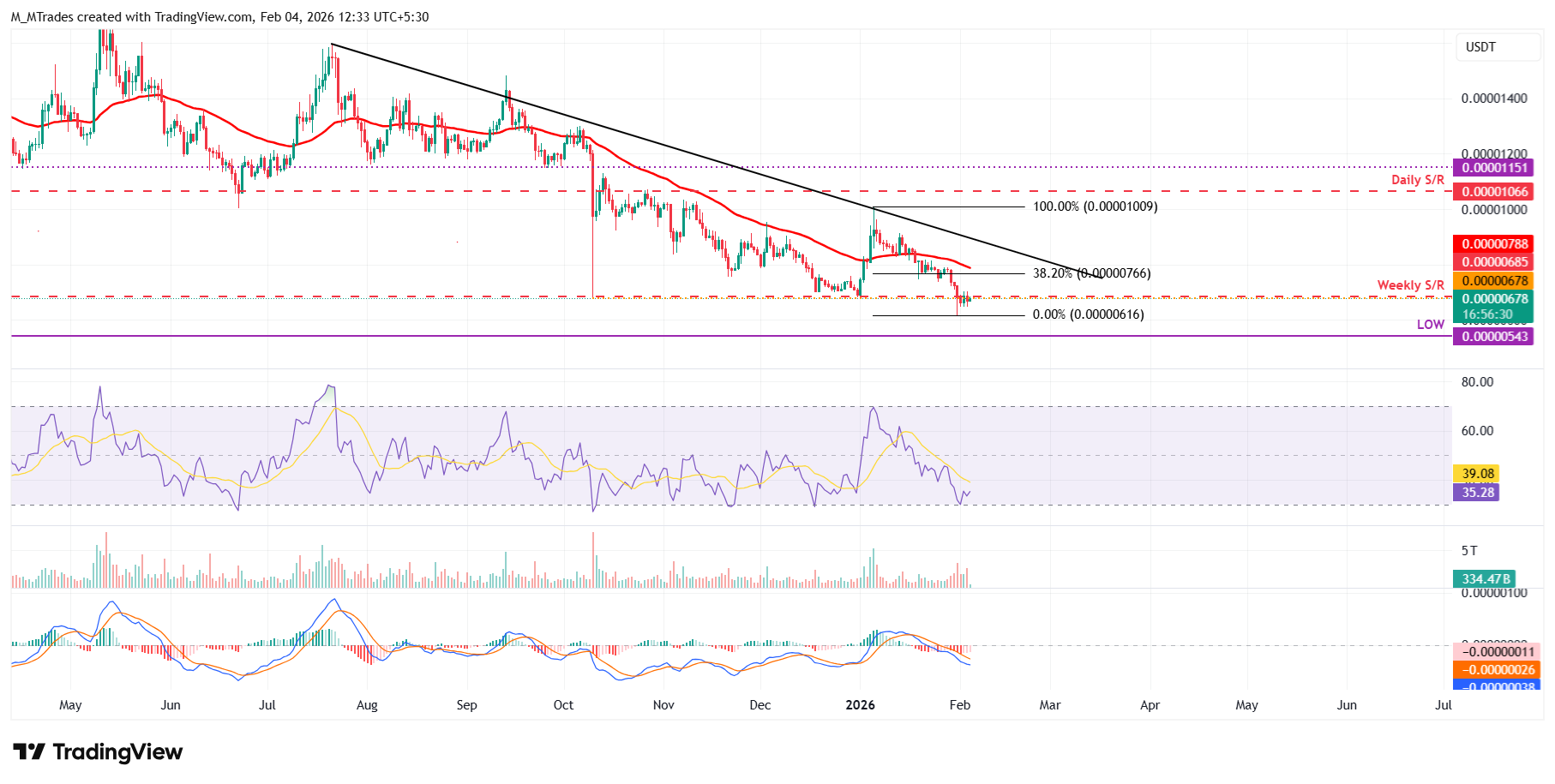 Traders should remain cautious as the primary trend for SHIB remains bearish, so any short-term recovery has a high probability of a dead-cat bounce — a brief price increase within a broader downtrend.
