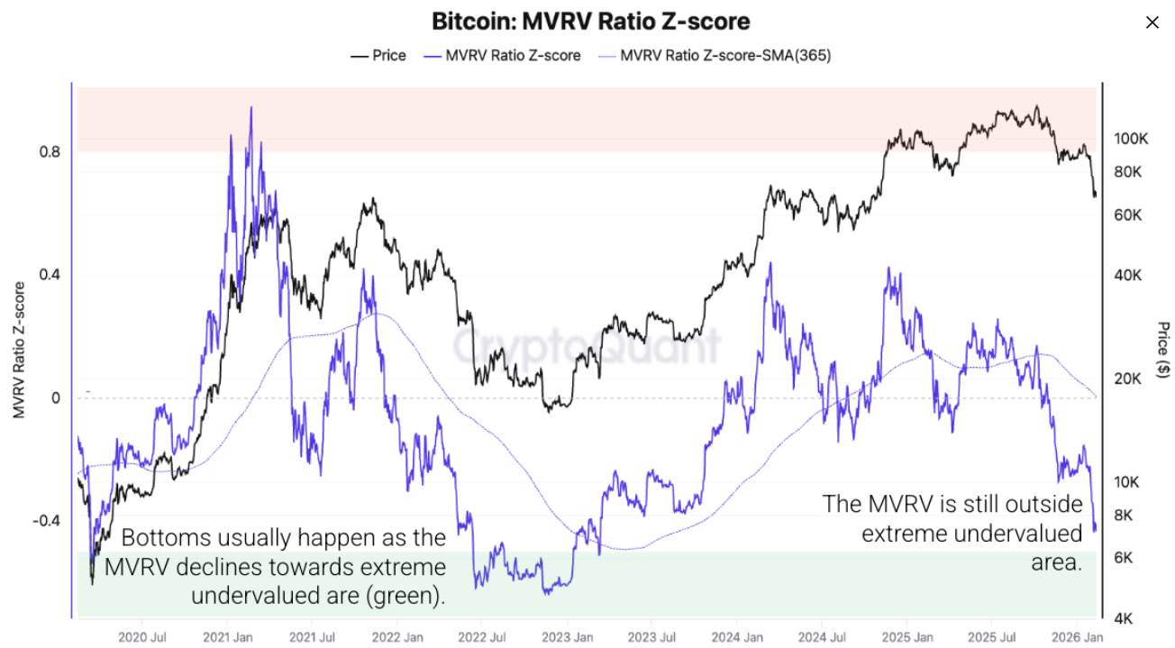 Bitcoin (BTC) price slips below $67,000 at the time of writing on Friday, remaining under pressure and extending losses of nearly 5% so far this week. Institutional demand for the Crypto King continues to weaken, pointing to a fourth consecutive week of withdrawals from spot BTC Exchange Traded Funds (ETFs). Meanwhile, CryptoQuant data indicate that a structural bottom may not yet be in place, as signs of full capitulation remain absent, leaving the door open for further downside.