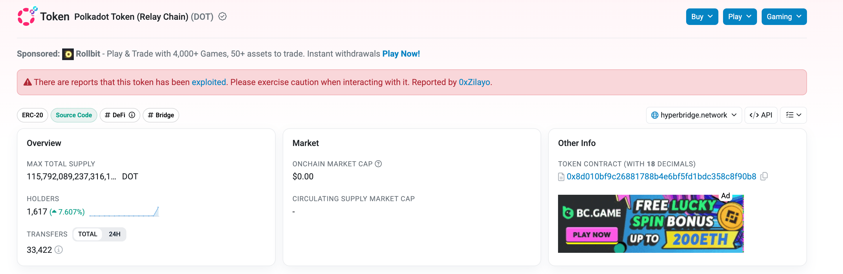 Fake DOT tokens sold on Ethereum