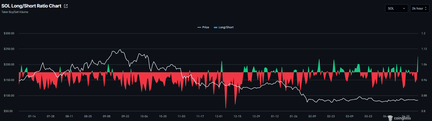 CoinGlass’ long-to-short ratio for SOL reads 1.08 on Wednesday, reaching its highest level in over a month. This ratio, being above one, reflects bullish sentiment in the market, as more traders are betting on the asset’s price to rise.